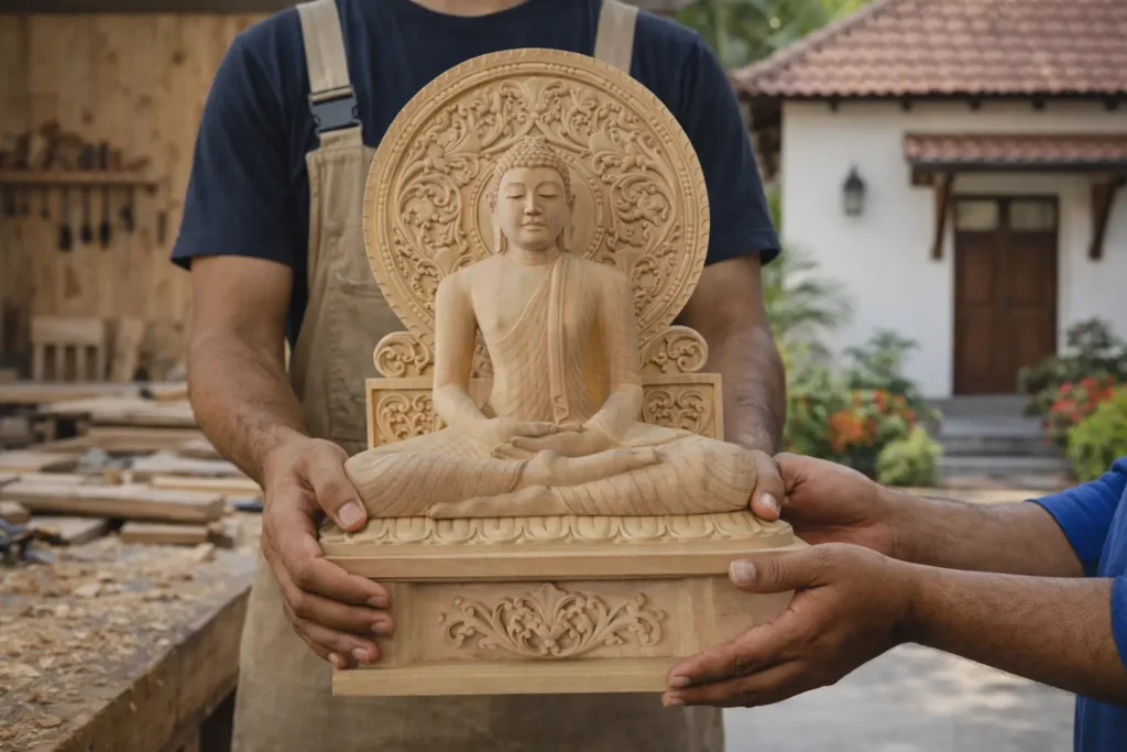 His philosophy is simple: to transform wood into a story of devotion. He crafts sacred forms that embody serenity, honoring timeless traditions and ensuring every piece reflects pure artistry. This is a skill honed over a lifetime, rooted in the rich woodworking heritage of Moratuwa.
